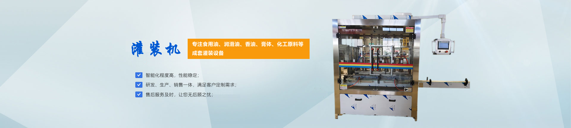 合信灌裝設(shè)備有限公司是一家專業(yè)致力于液體灌裝設(shè)備, 水處理設(shè)備的設(shè)計、研發(fā)、銷售、工業(yè)配套、技術(shù)咨詢與服務(wù)一體的專業(yè)化、環(huán)保型公司。公司竭誠為您提供酒水類、食用油、潤滑油、香油、膏體、化工原料等成套灌裝設(shè)備,清洗、封口、封箱等各個工序所需要的輔助設(shè)備,以及水處理設(shè)備。還可依托我公司技術(shù)優(yōu)勢為您推薦和設(shè)計您所需要的異性容器的灌裝生... 【查看更多】
